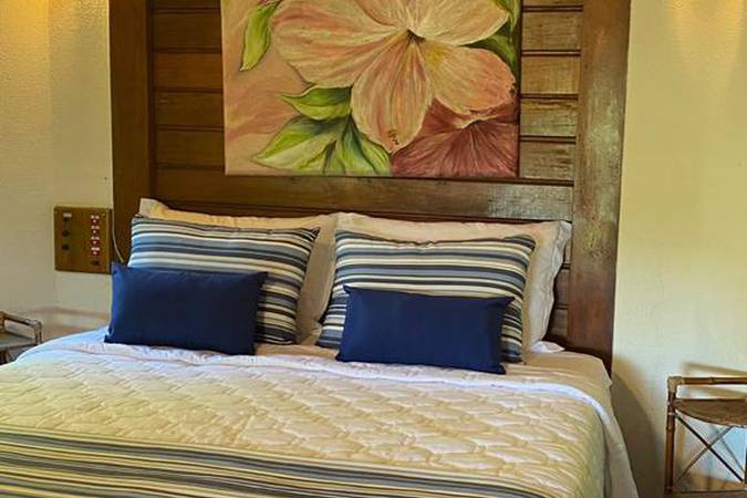 O Bangalô Prainha possui dois quartos (um quarto ao lado do outro) e é perfeito para quem viaja em família ou grupo de amigos. Possui cama Queen size ou solteiro, varanda e vista para o jardim e área verde. Entre as comodidades ainda estão: ar condicionado, frigobar, TV, cofre e armários.